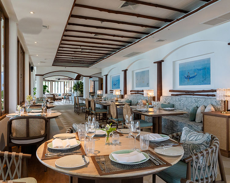 于全新设计的餐厅中,邂逅海岸之韵与地中海美馔的完美融合。 柔和的灰蓝色调与简约优雅的空间设计,营造出宁静而高雅的氛围——无论是浪漫晚餐、家庭聚会,或特别庆典,皆是理想之选。 从精心挑选的家具到舒缓的海景氛围,每一处细节都为宾客带来舒适与愉悦的用餐体验。 伴随迷人景致与惬意气息,细细品味精致的地中海料理,让每一次到访都成为难忘的美好回忆。